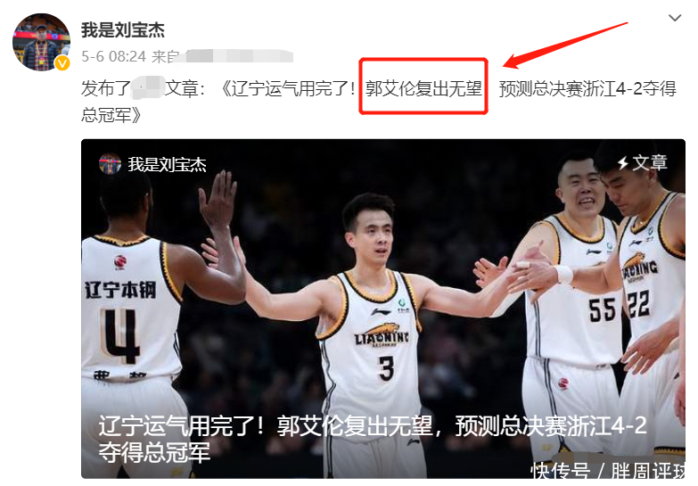 而就在总决赛开打之前,把柄CBA知名媒体东说念主刘宝杰发布音问自大,郭艾伦概况率无缘总决赛复出,这关于辽宁男篮的斗争力无疑是大打扣头,若是刘宝杰自大的音问准确,无疑关于辽宁男篮来说将会带来前所未有的打击,这也让杨鸣总决赛排兵列阵十分被迫,若是说后卫线只剩下赵继伟和弗格两个打硬仗的后卫去跟浙江稠州四大国手级后卫苦战的话,势必会吃体能的亏。